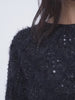 This is a crewneck cropped sweater with wave-edge cuffs and hem. It’s crafted with a diamond-knit texture, feather-trim accents and crystal embellishment for a soft yet dimensional look. The cropped silhouette defines the waist and elongates proportions, while the round neckline layers effortlessly with jewelry.