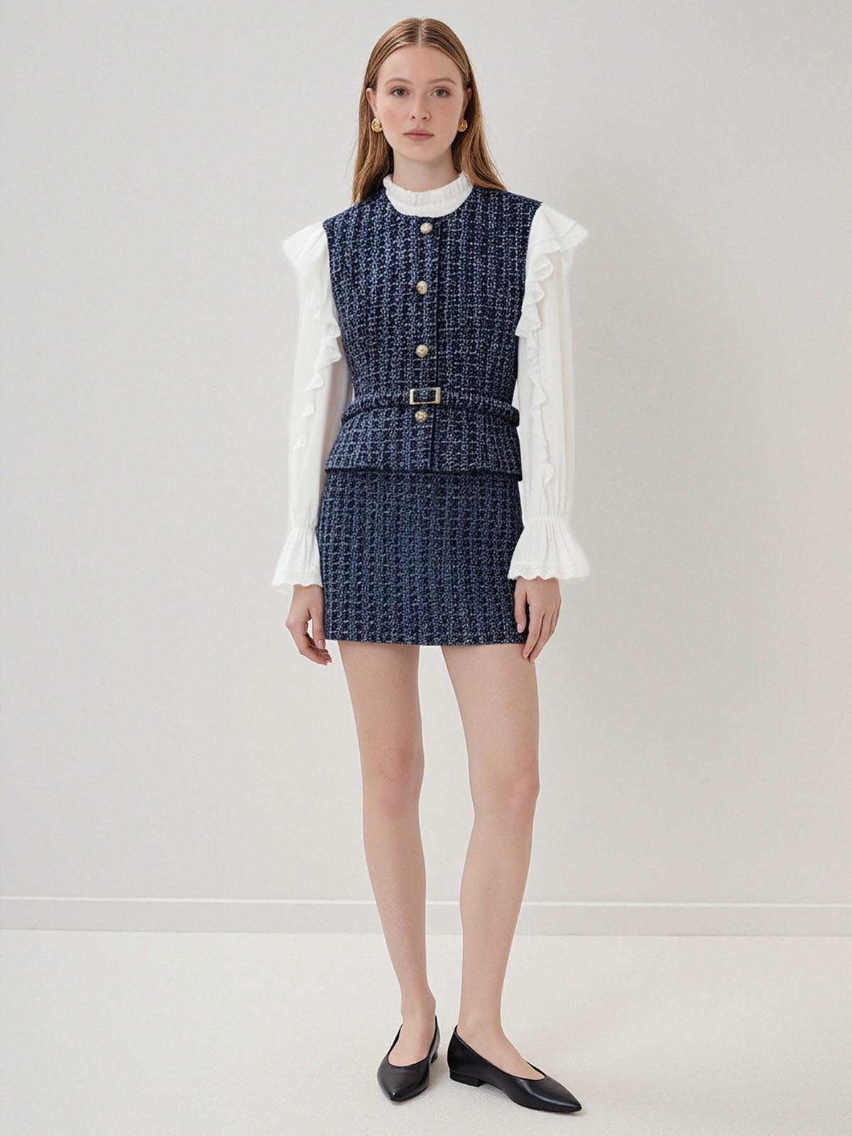 ASOBIO Cropped Tweed Vest
