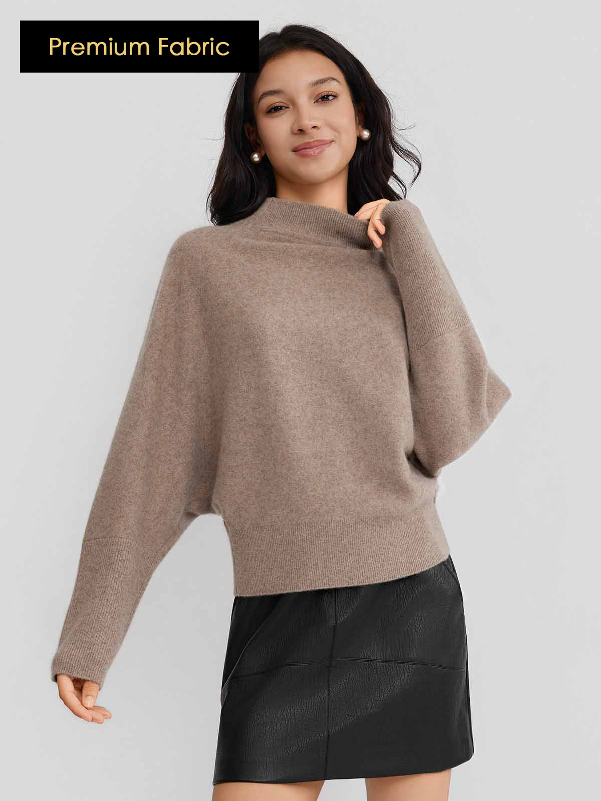 Crafted from a luxurious Himalayan yak wool blend, this pullover features raglan batwing sleeves, a ribbed mock neck, and ribbed cuffs and waist for a naturally relaxed silhouette.