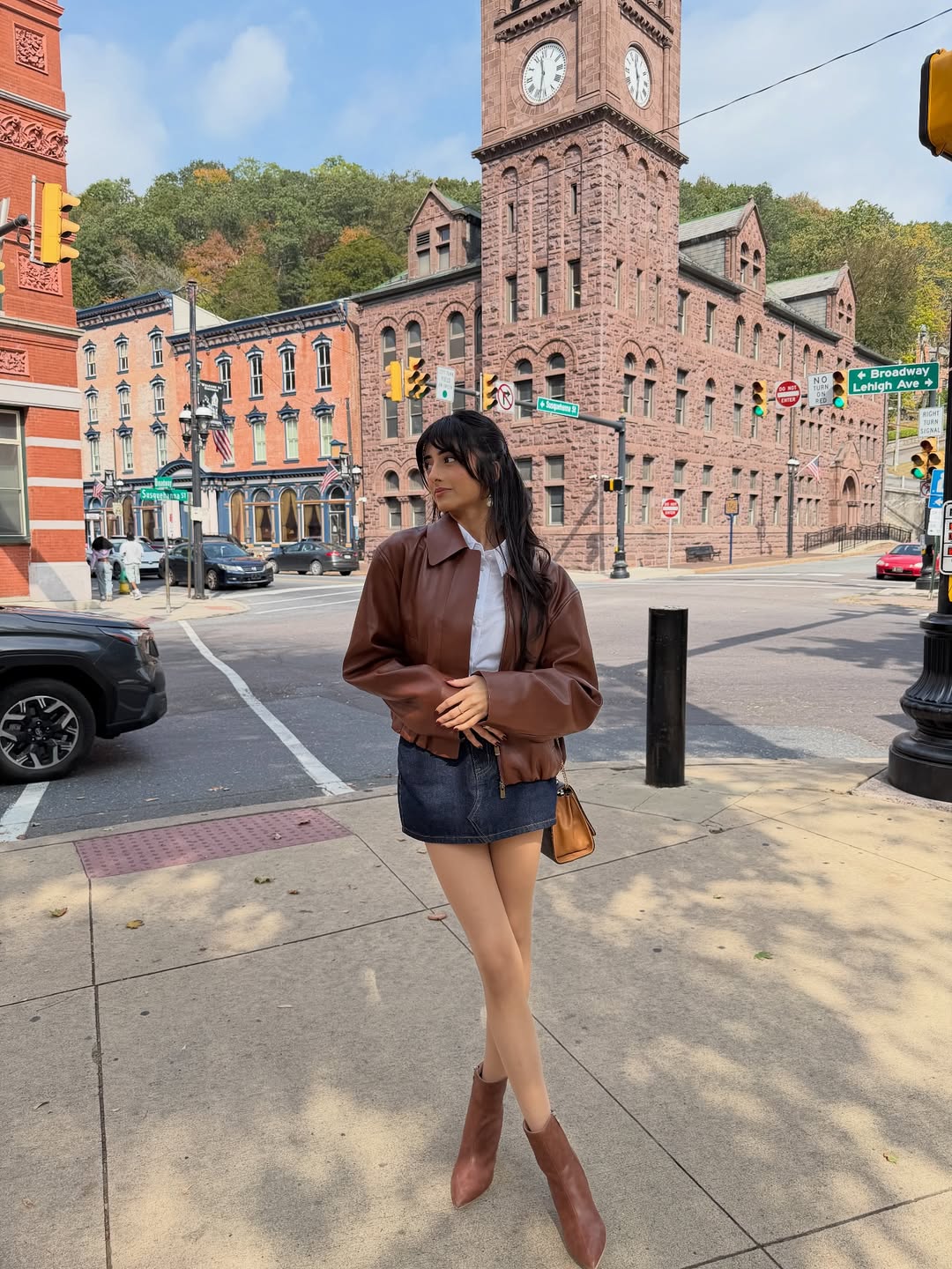 A structured cropped jacket with a clean collar, wind flap detailing, and a fitted hem for a polished, versatile look. Loose silhouette for layering. Made from smooth PU leather with subtle stretch for comfort and easy wear.