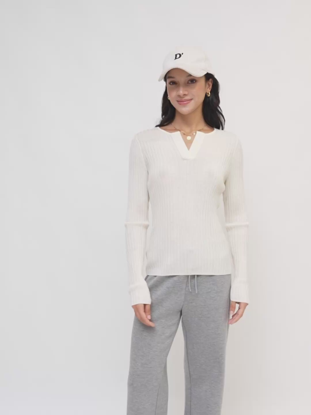 ASOBIO 100% Wool Ribbed V-Neck Pullover Sweater