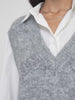 A V-neck sleeveless knit vest accented with a flowing bow motif for a playful twist. Finished in a plush knit texture, perfect for layering.