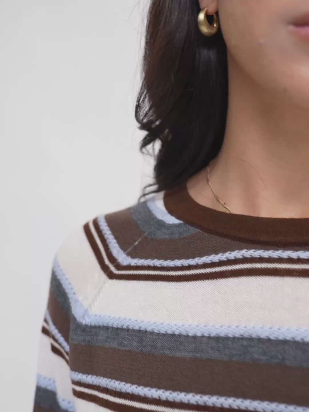 Crafted from a wool blend for warmth and comfort. Detailed with contrast horizontal stripes that refine the shoulder line and create a clean, flattering silhouette.